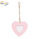 Appendino cuore colore rosa in legno con spago altezza 7x7 centimetri