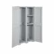 armadio a due ante colore grigio con 4 vani, di cui uno porta scope e due ripiani.