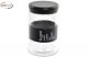 barattolo in vetro con fascia nera e scritta bianca e coperchio nero.