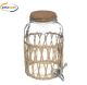 Barattolo in vetro dispenser per bibta da 3,3 litri con decoro in paglia intrecciata e tappo in sughero, altezza 26 diametro 15 centimetri