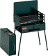 Barbecue Pic Nic con : valigetta in acciaio, coperchio e fianchetti, paravento, griglia cromata, gambe pieghevoli, griglia fuoco in lamiera.