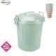 Bidone Esla pattumiera in plastica con maniglie in metallo e coperchio, in colorazione assortita.