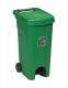 bidone urban eco system da 80 litri in plastica verde con apertura verso l'alto a pedale, con ruote, maniglione e anello fermasacco.
