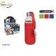 Borraccia in vetro, con tappo in acciaio, con fodera in colorazione assortita.