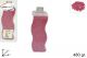 bottiglia di plastica con tappo contenente sabbia colorata fucsia.