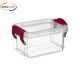 Box in plastica trasparente con coperchio e chiusura colorata.