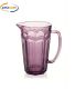 Brocca in vetro rosa con lavorazione in rilievo.