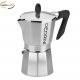 Caffettiera 6 tazze in alluminio, fondo tornito antiscivolo.