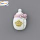 Calamita biberon in porcellana bianco, con fiocco rosa e corona oro.
