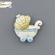 Calamita in porcellana a forma di carrozzina celeste e oro.