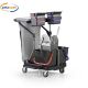Carrello industriale con: supporto sacco da 120 Lt con coperchio, doppio secchio in polipropilene da 15 Lt, doppio secchio in polipropilene da 6 Lt, strizzatore new line, base in polipropilene con 4 ruote, Base reggiscopa e Portamanico.