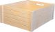 Cassetta in legno naturale con prese laterali.