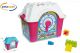 Costruzioni in box Clik Clok Bloks a casetta, con blocchi di colore e forma assortiti all'interno.