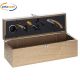 Cofanetto in legno con 5 accessori per sommelier: termometro, cavatappi, tappo, tappo versatore e anello.