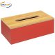 Cofanetto porta salviettine rosso con coperchio in bamboo.