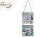 Cornice da muro in legno con 2 portafoto singoli 16x16 legati con corda,tema mare con casette e faro,colore azzurro ,grigio, bianco e legno naturale