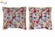 Cuscino arredo in velluto, fantasia volatili con frange laterali.