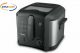 Friggitrice elettrica con corpo in acciaio inox, termostato regolabile, serbatoio interno non staccabile con rivestimento anti aderente, filtro in carbonio removibili assorbi odori, grande finestra superiore per il controllo del cibo in cottura, cestello in acciaio inox, indicatori luminosi, piedini antiscivolo e pulsante di apertura porta.