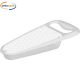 Grattugia capri in plastica, con vaschetta e manico, forma triangolare.