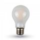 Lampadina LED V-Tac VT-1934 con potenza di 4W e attacco E27. Forma Bulb A60 in vetro satinato e alluminio. LED a Filamento con fascio luminoso di 300 e flusso luminoso di 400 lm. La potenza di 4W è equivalente a 40W di una lampadina ad incandescenza. Questa lampadina ad alta luminosità, ha un rapporto di 100 lm/W. La copertura in vetro satinato, crea un effetto frost che fa solamente intravedere il LED a filamento.