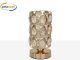 Lume da tavolo con paralume in metallo intarsiato, in colorazione bronzo con cristalli su tutta la struttura.
