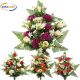 Mazzo frontale grande con germogli e fiori pompom altezza 48 centimetri