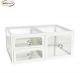 Organizer cosmetico in plexiglass trasparente con anima in plastica bianca, con 1 cassetto grande e 2 cassetti piccoli.