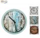 Orologio rotondo a muro country con decorazione effetto legno, in colorazione assortita.