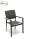 Struttura in alluminio verniciato colore antracite e braccioli con inserto in Polywood color legno, seduta e schienale in textilene imbottito colore grigio tortora.