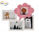 Portafoto con 4 cornici, con decorazione bianca e sagoma nuvoletta rosa con all'interno la cornice.
