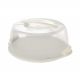 Portatorte in plastica trasparente con base bianca.