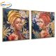 Quadro in tela con cornice oro, decoro donna africana con cappello.
