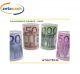 Salvadanaio grande in latta con stampa della banconta dell'euro.