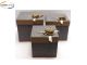 SCATOLA QUADRATA IN TESSUTO GRIGIO, FIOCCO ROSE NATURALI. H. 26 CM.