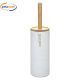 Scopino con portascopino in ceramica e legno effetto marmo bianco altezza 39 diametro 11 centimetri.