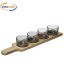 Servizio aperitivo composto da 4 ciotoline in vetro e 1 tagliere in legno.