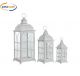 Set 3 lanterne in metallo bianco con finestre laterali in vetro,con decoro sul tetto con quadrifogli stilizzati