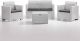 Set Nebraska bianco con divano a 2 posti,2 poltrone e tavolino, con cuscini grigi inclusi