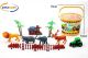Set secchiello con gli animali della savana, leone, alce, elefante, ippopotamo, trattore, steccato, casetta e palma.