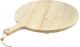Tagliere rotondo in legno naturale, con manico, idoneo per alimenti.