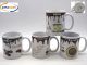 Tazza in ceramica bianca con fantasia caffè e scritta Cappuccino altezza 10 diametro 8 centimetri