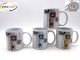 Tazza in ceramica colore bianca con fantasia quadrati gialli e verdi altezza 10 diametro 8 centimetri