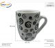 Tazza in porcellana bianca con decoro chiocciola nera.