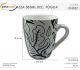 Tazza in porcellana bianca con decoro fiori e foglie nere.